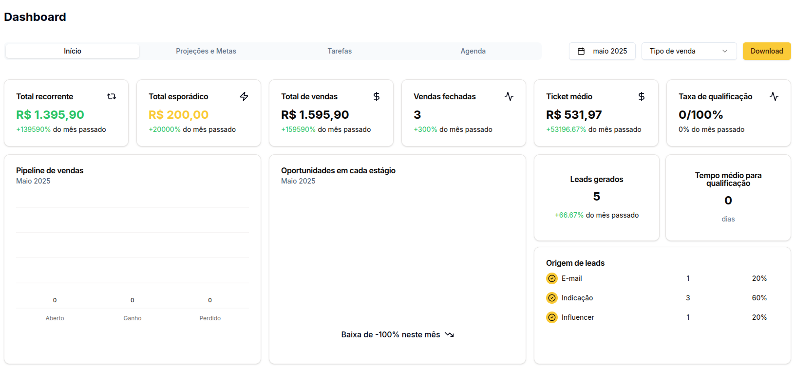 3 vendas (+300% do mês passado) -